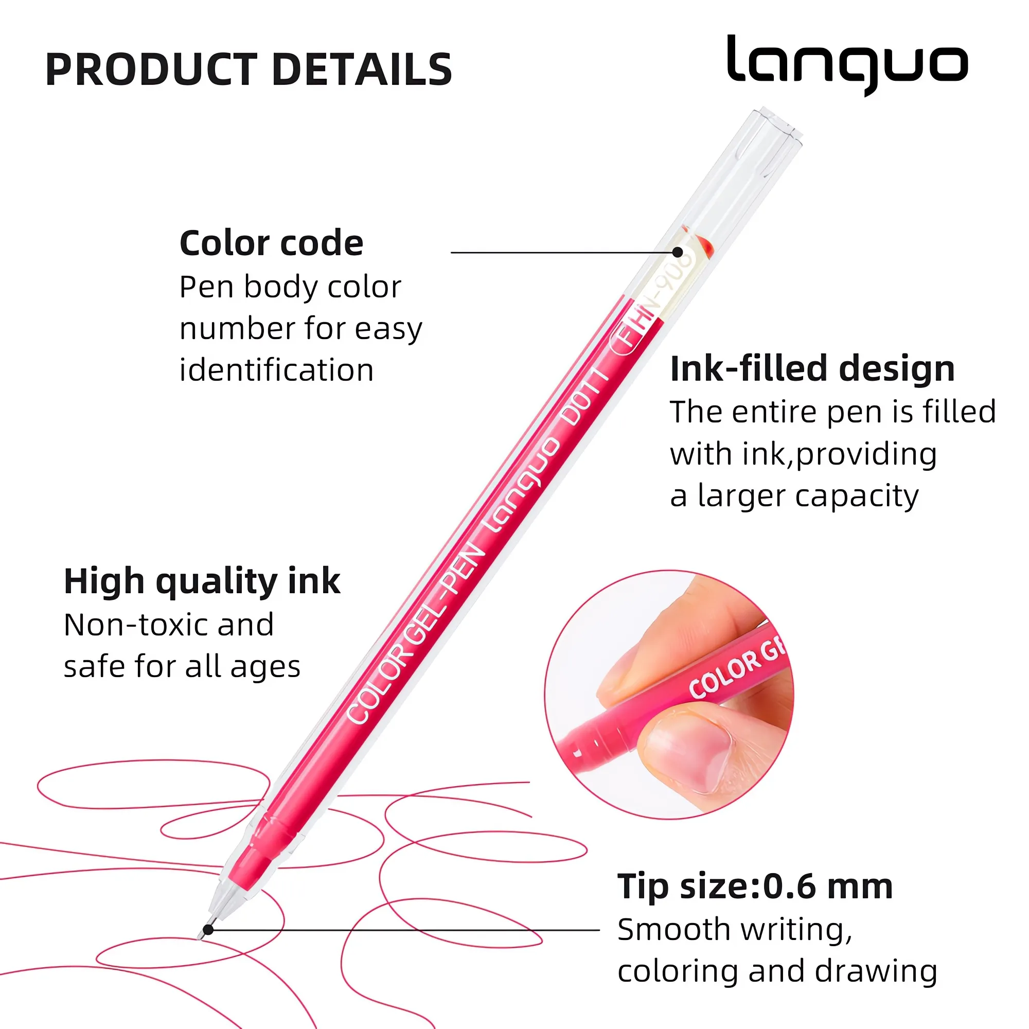 LanGuo 45-162 Color Gel Pens Set – 0.6mm Fine Tips – Coloring – Journaling – Doodling