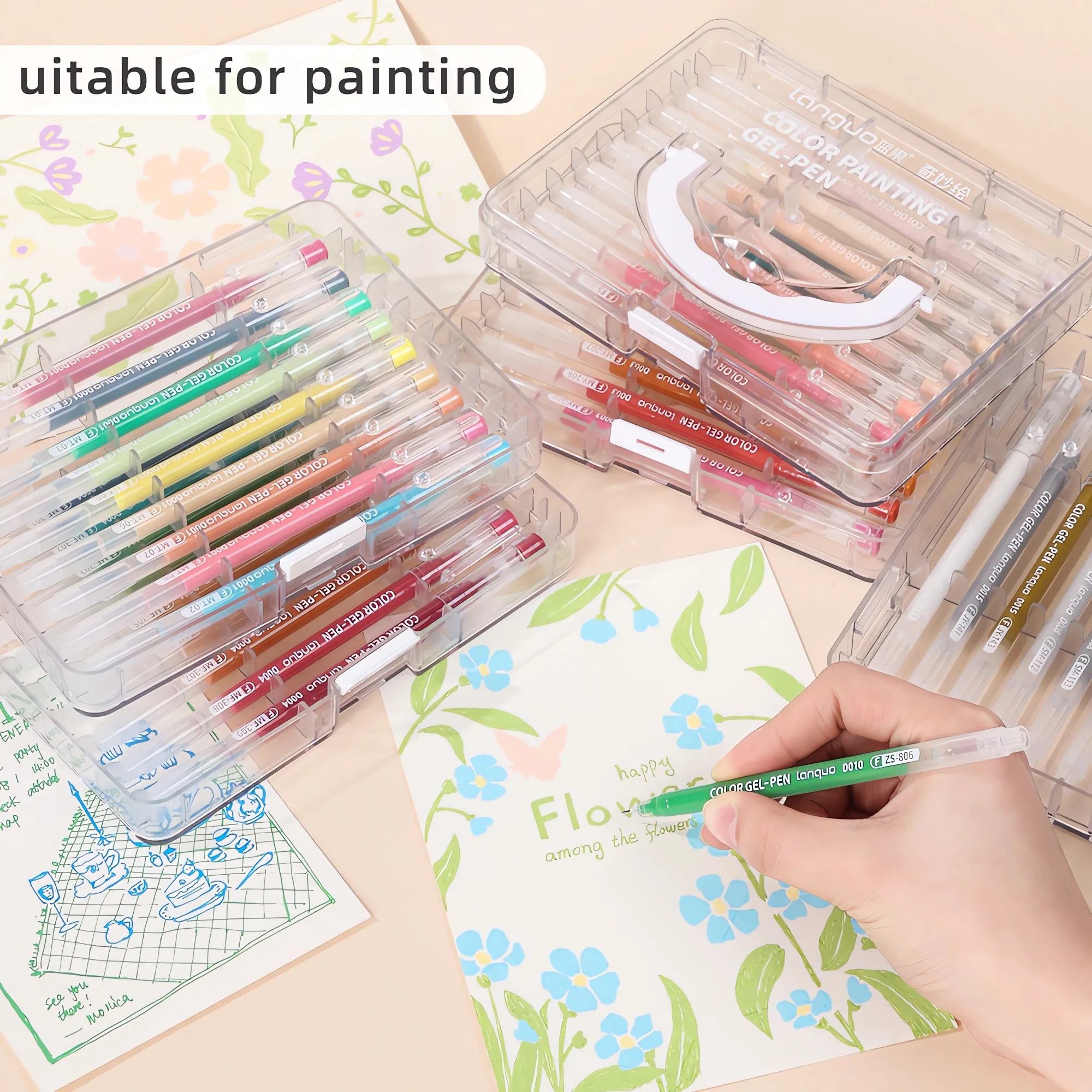 0.6mm fine tip color gel pens – 45-162 colors – quick-dry, smudge-resistant ink – metallic gold/silver, opaque white – portable case.