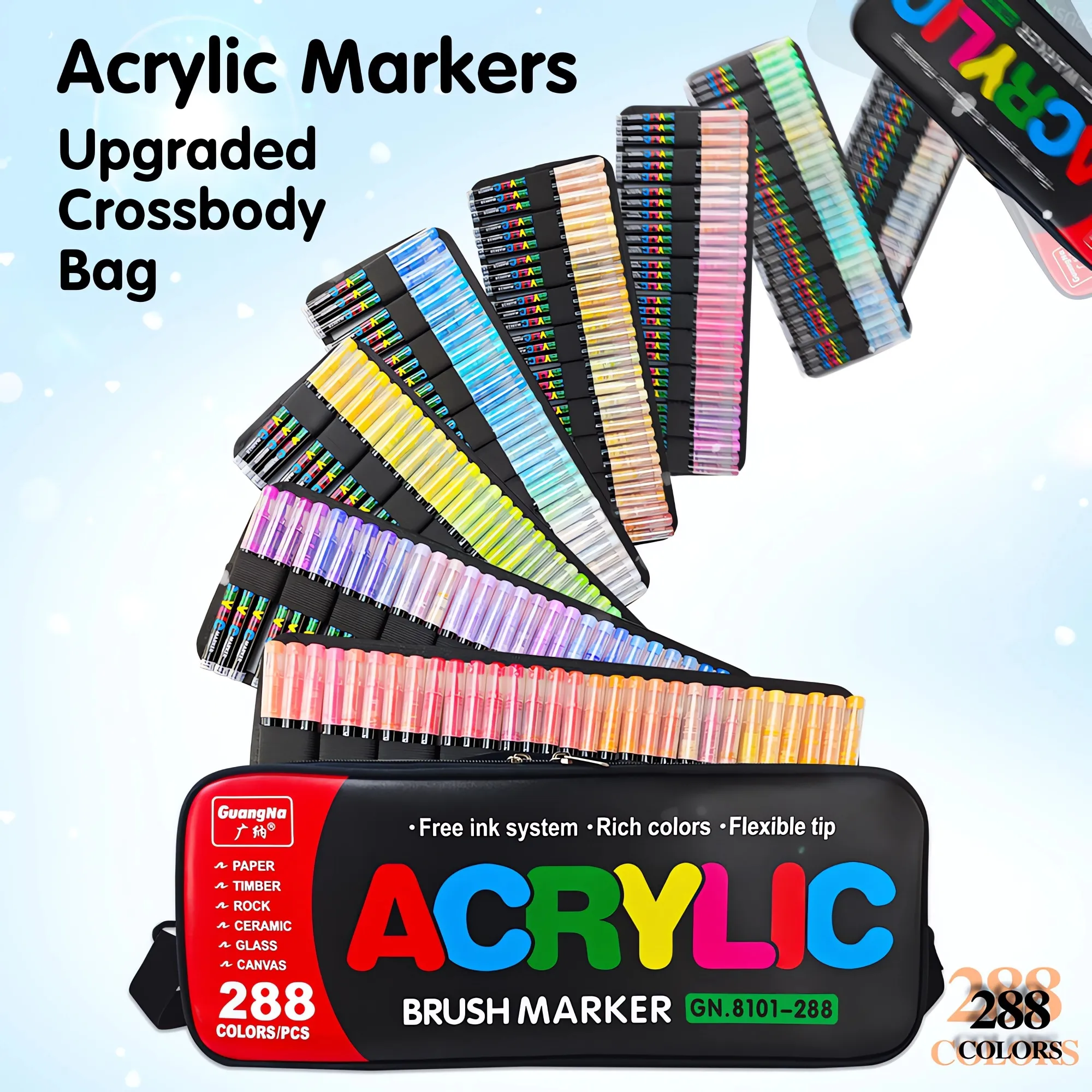 Guangna Acrylic Paint Markers – Brush Tip – 240 & 288 Colors – Direct-Liquid Ink Control System