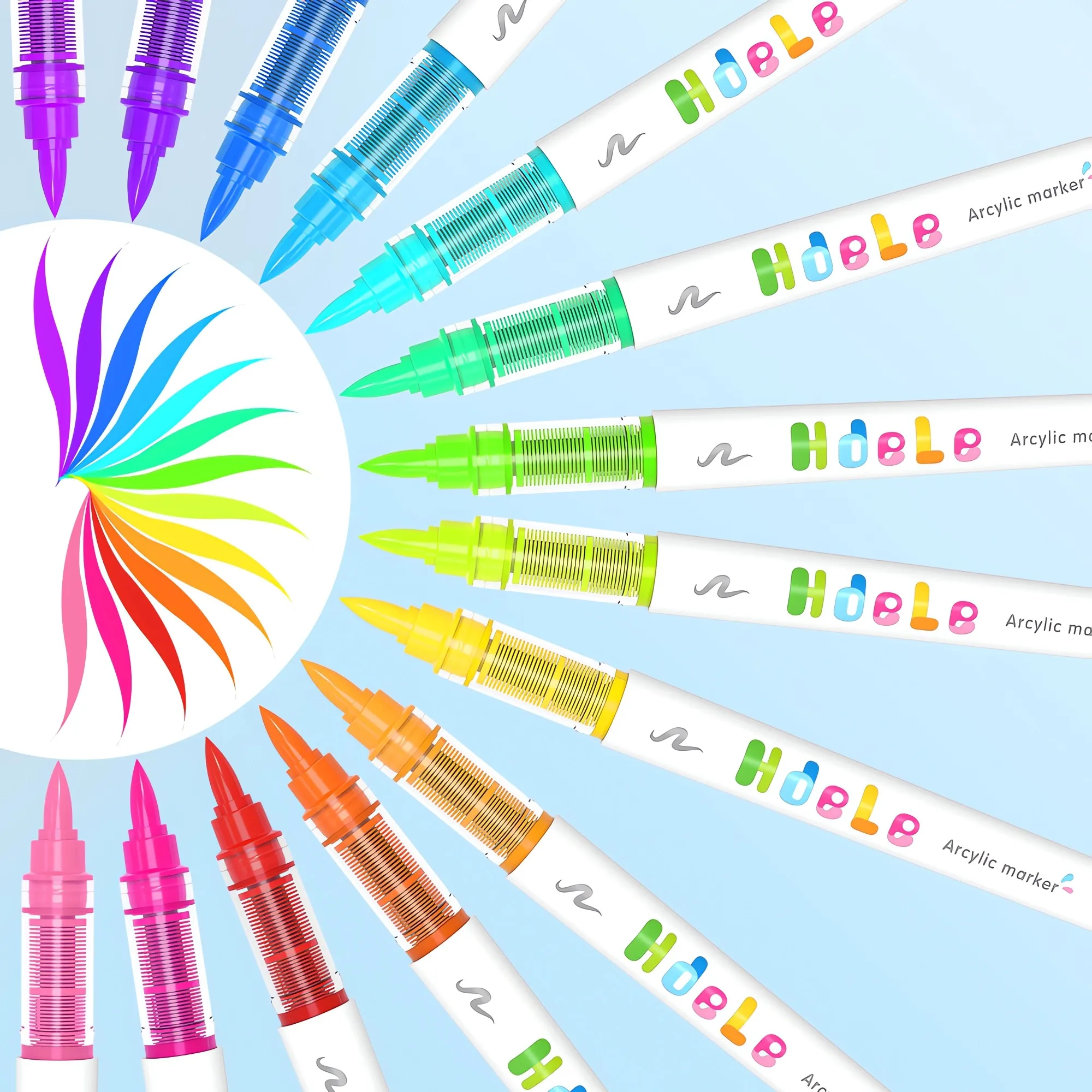 Guangna acrylic paint markers feature 8 to 240 colorss, soft brush tips, and water-based ink for smooth application on various surfaces like canvas, rock, and glass.