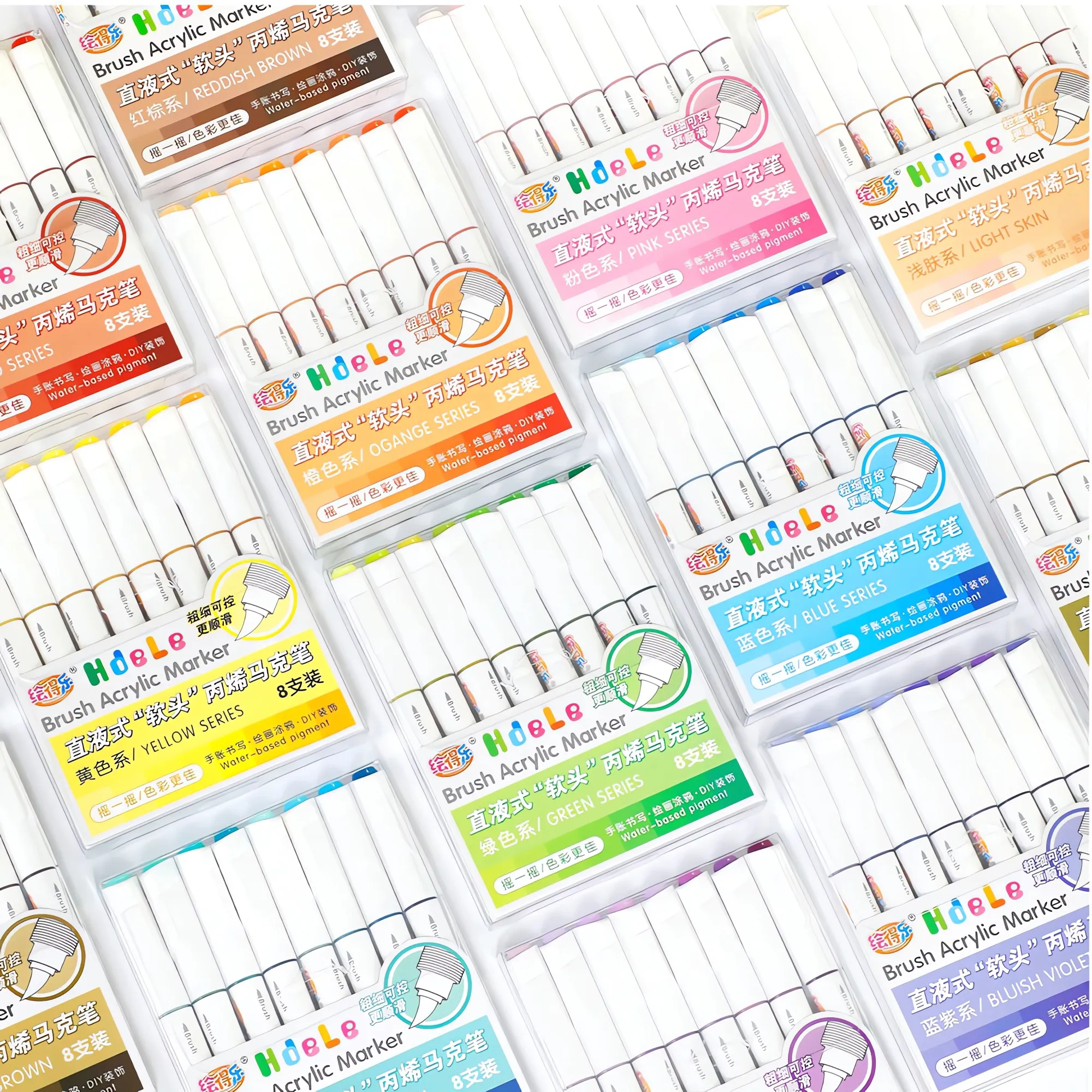 Guangna Acrylic Paint Markers Set, 8 to 240 colors, Soft Brush Tip, Water-Based for Canvas, Rock, Glass, DIY Crafts