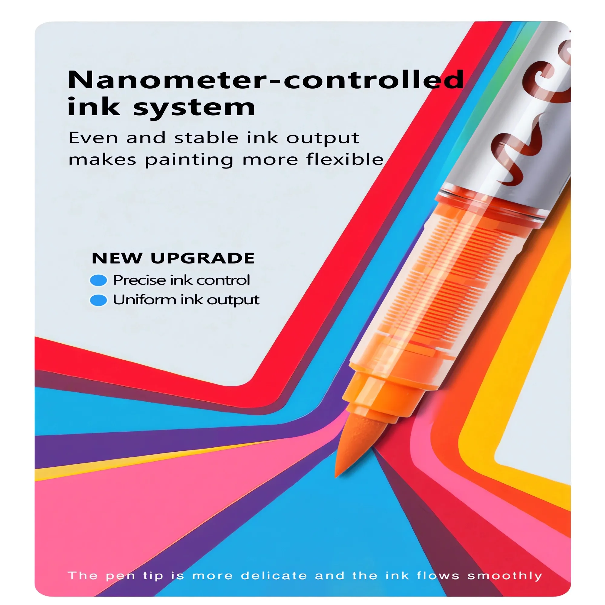 - Flexible fiber soft tips – fine lines to bold strokes – clean outlining – shading – lettering – steady control