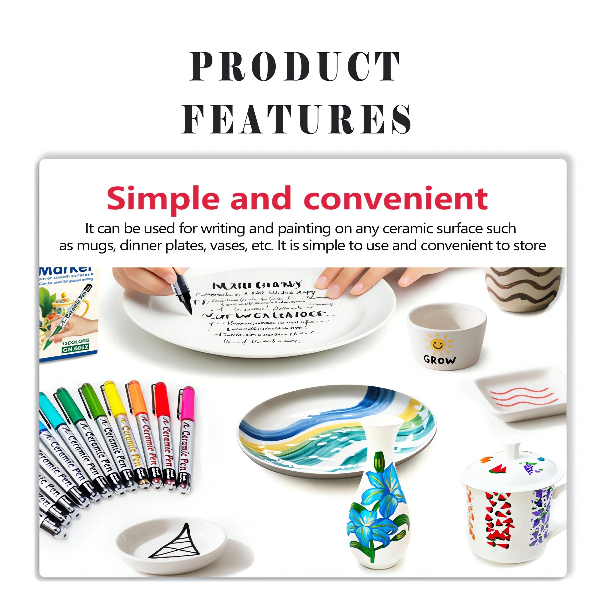 Guangna Direct-Liquid Ceramic Paint Pens – 12 Colors Soft Brush Acrylic for Glass – Porcelain – DIY