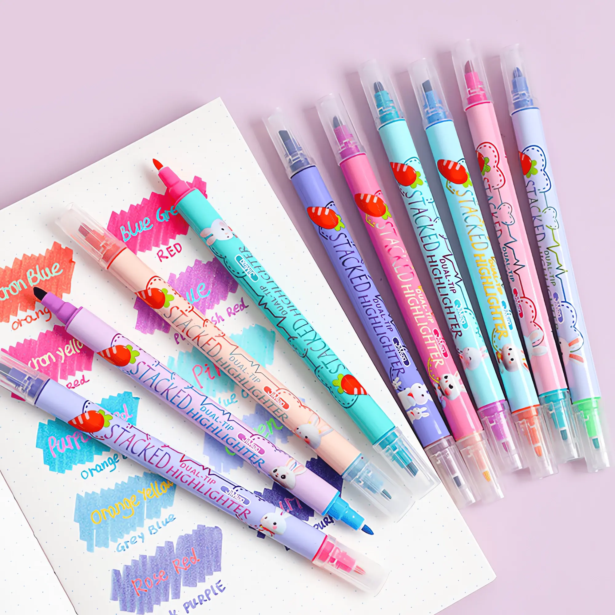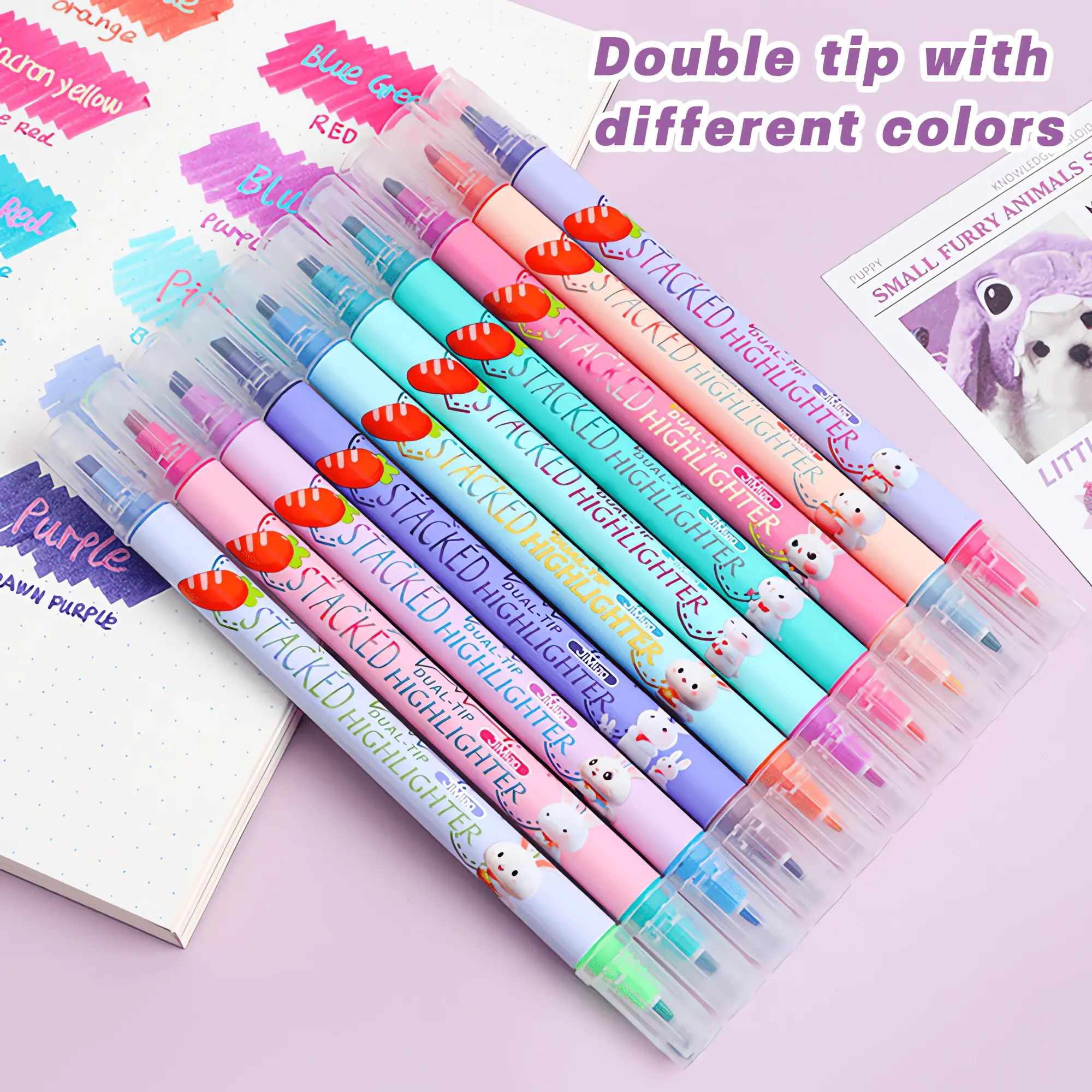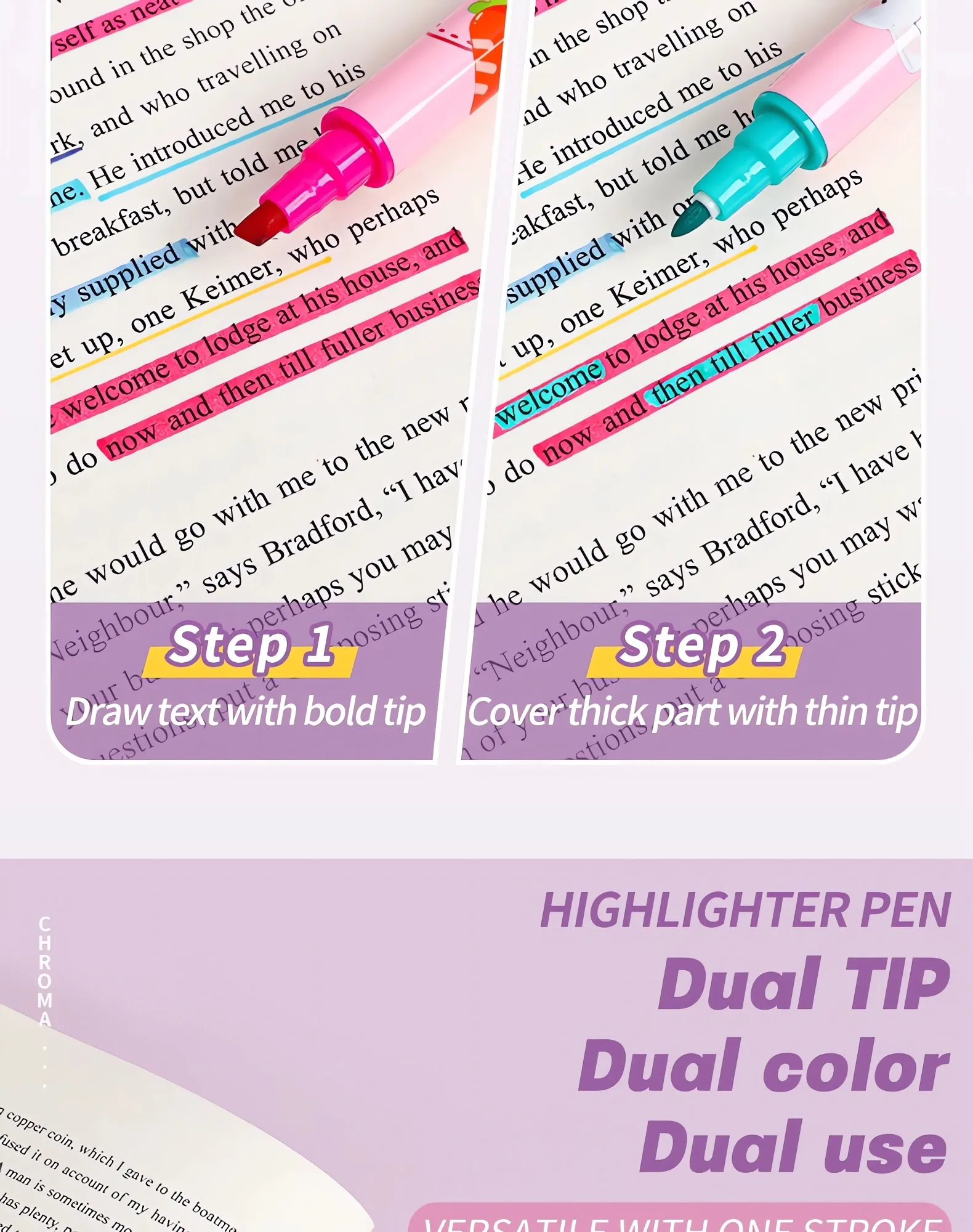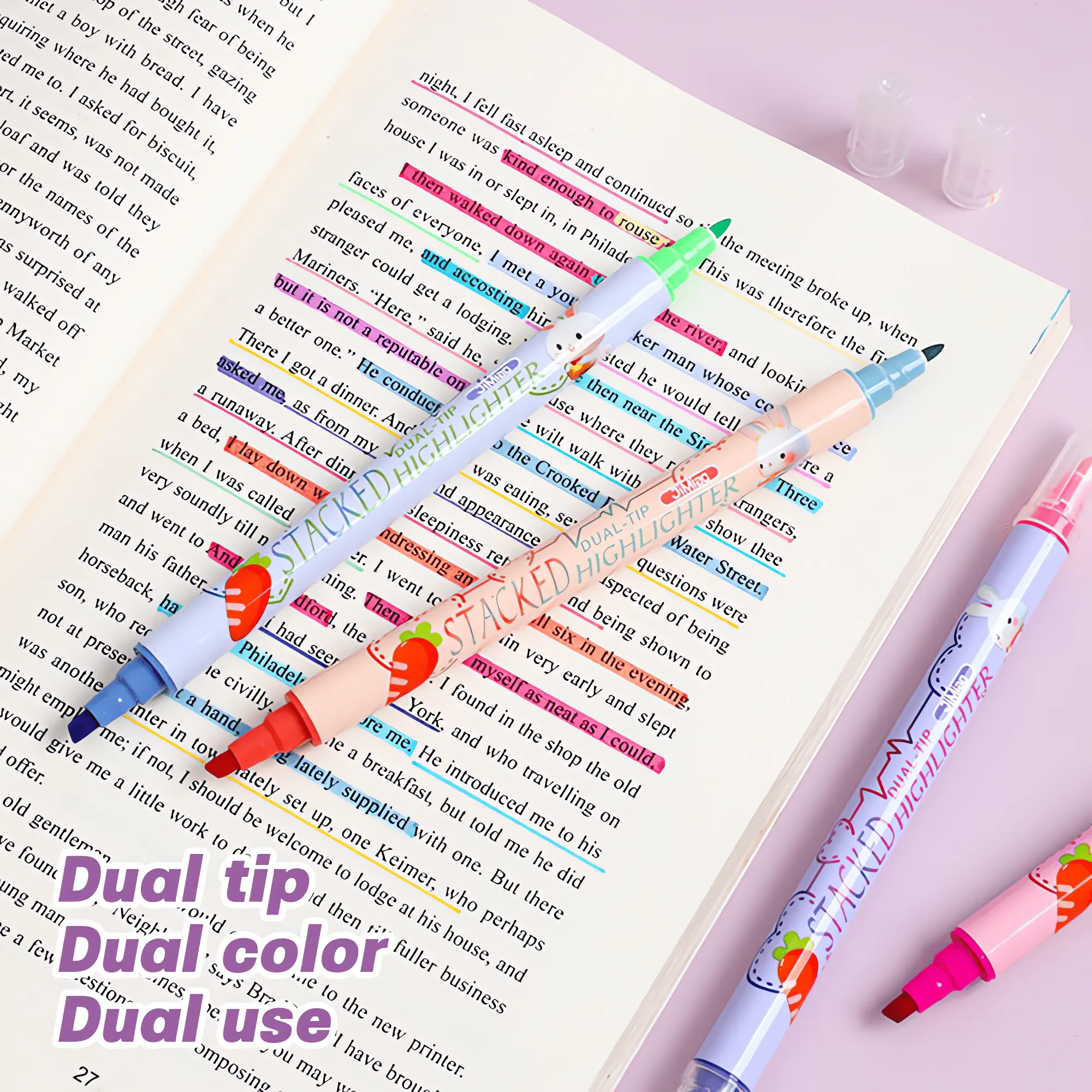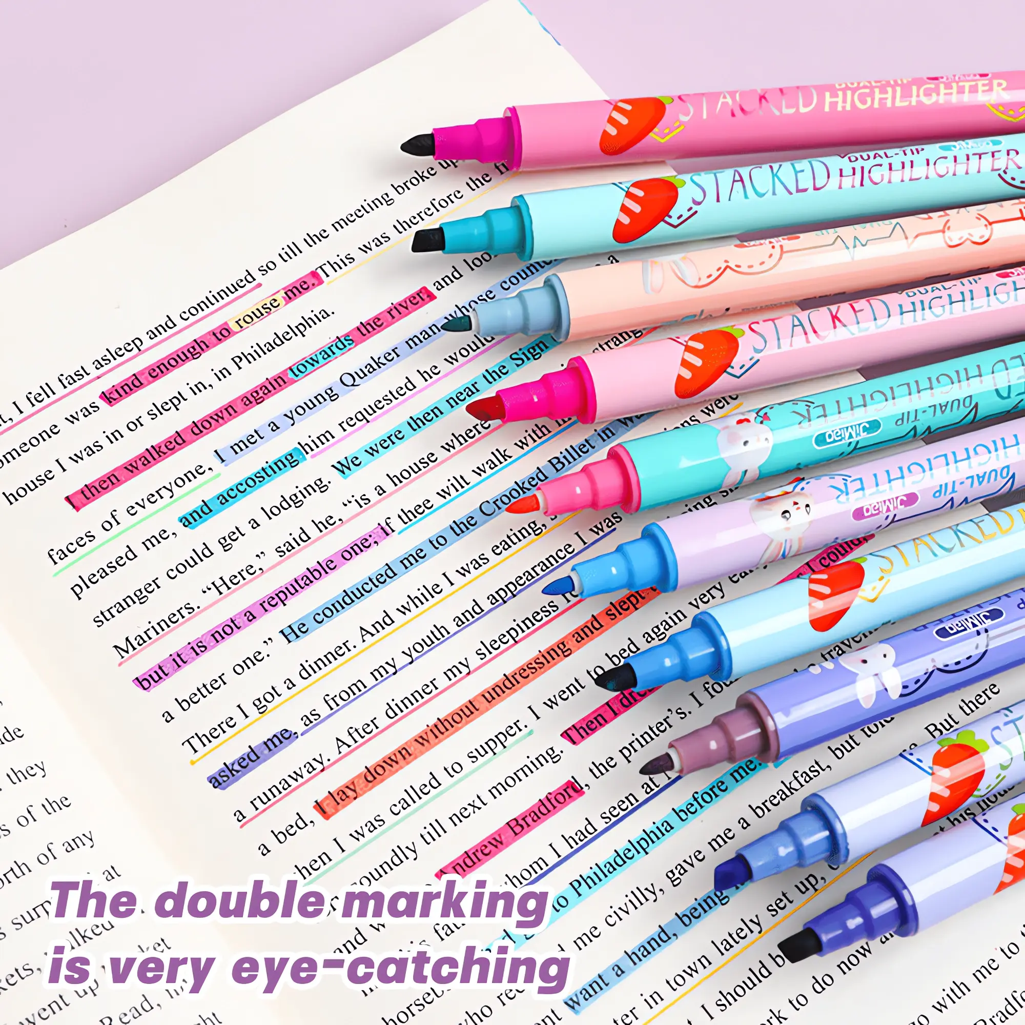 JiMiao Double-Headed Highlighter Markers Set – Dual-Color – Broad Base Tip, Fine Accent Tip – No Bleed