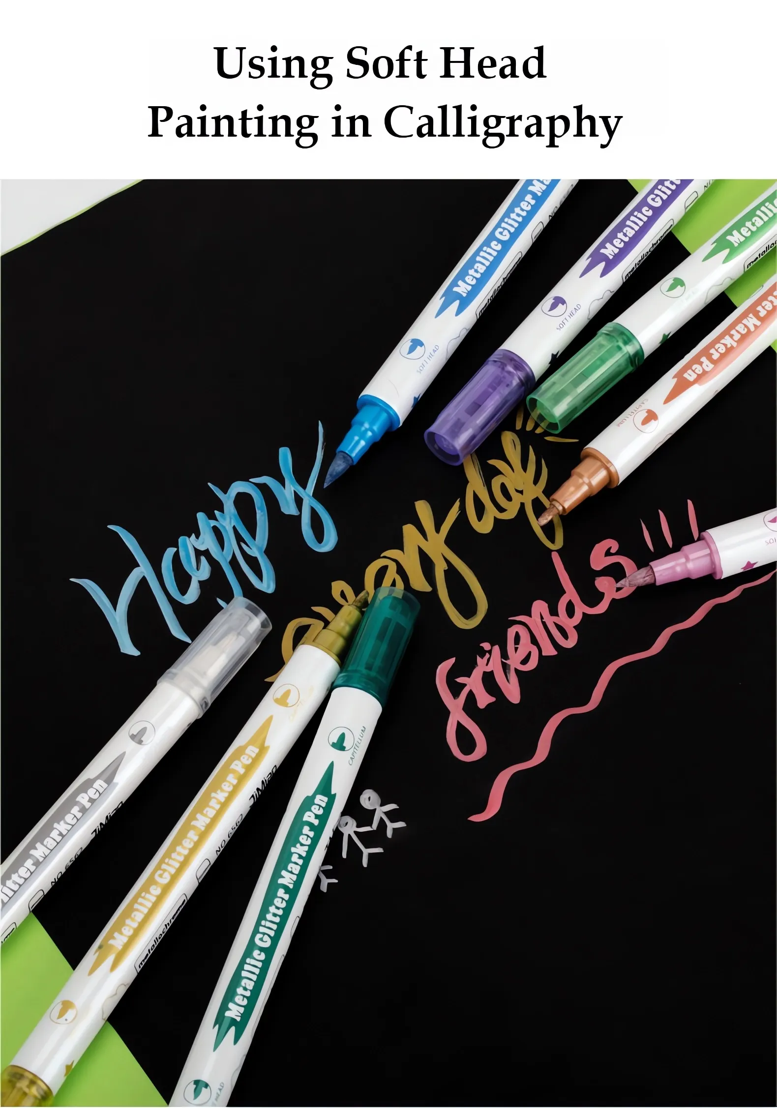 Soft brush head – smooth strokes – ideal for calligraphy drills and rapid large-area coloring.