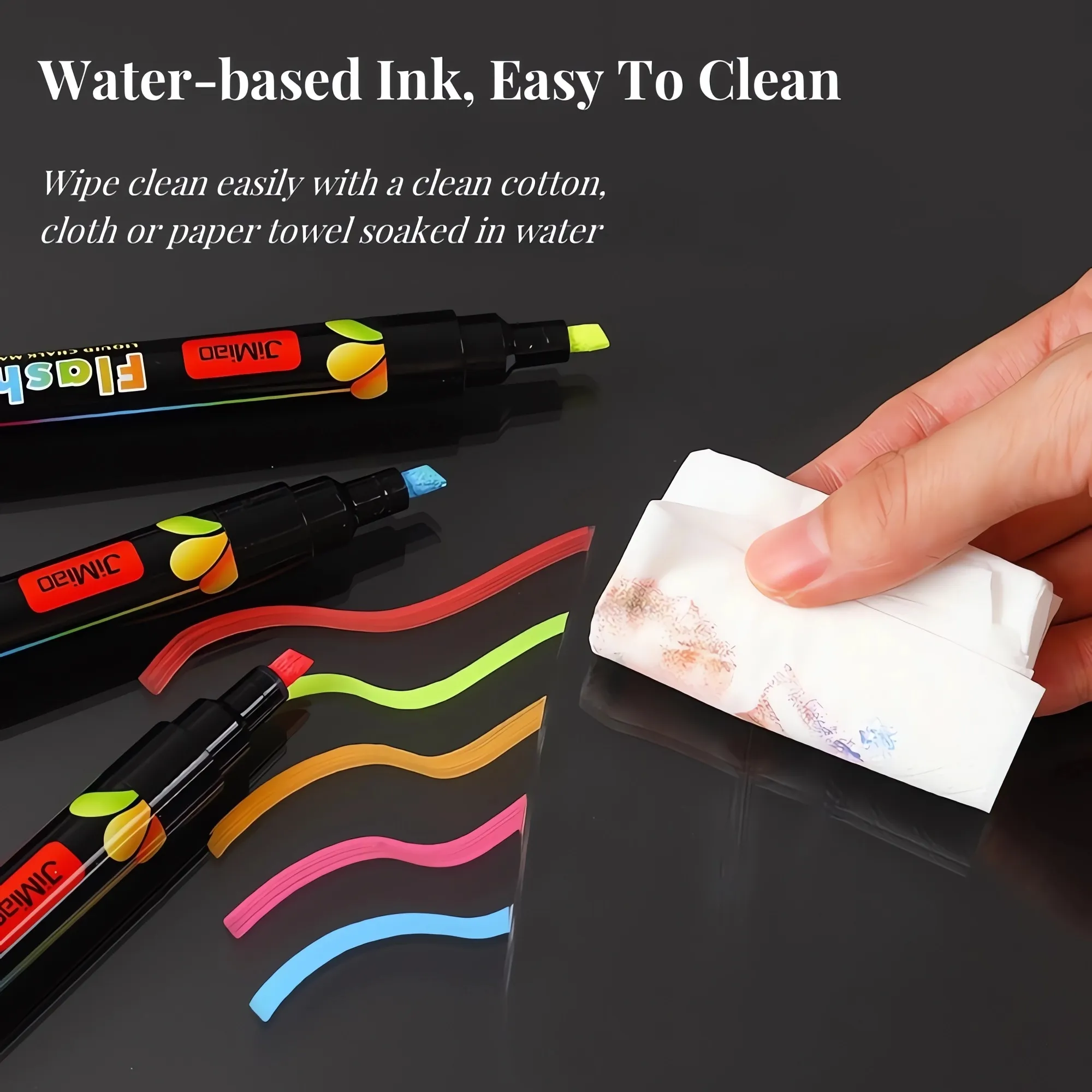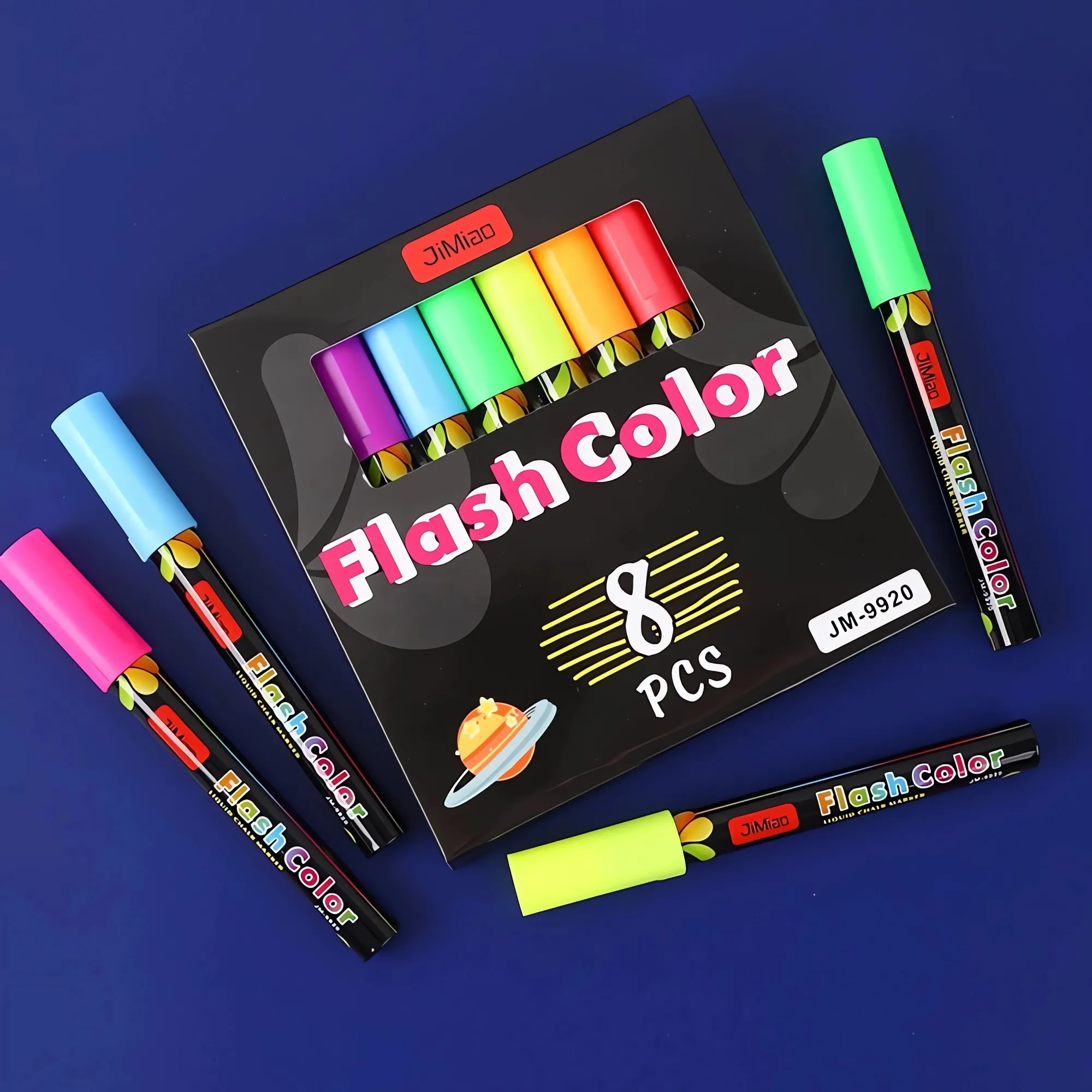 JiMiao Flash Color Liquid Chalk Markers Set for LED Boards – 8 Vibrant Easy-Erase Highlighters