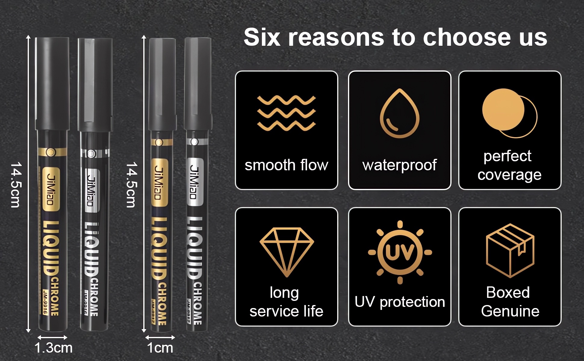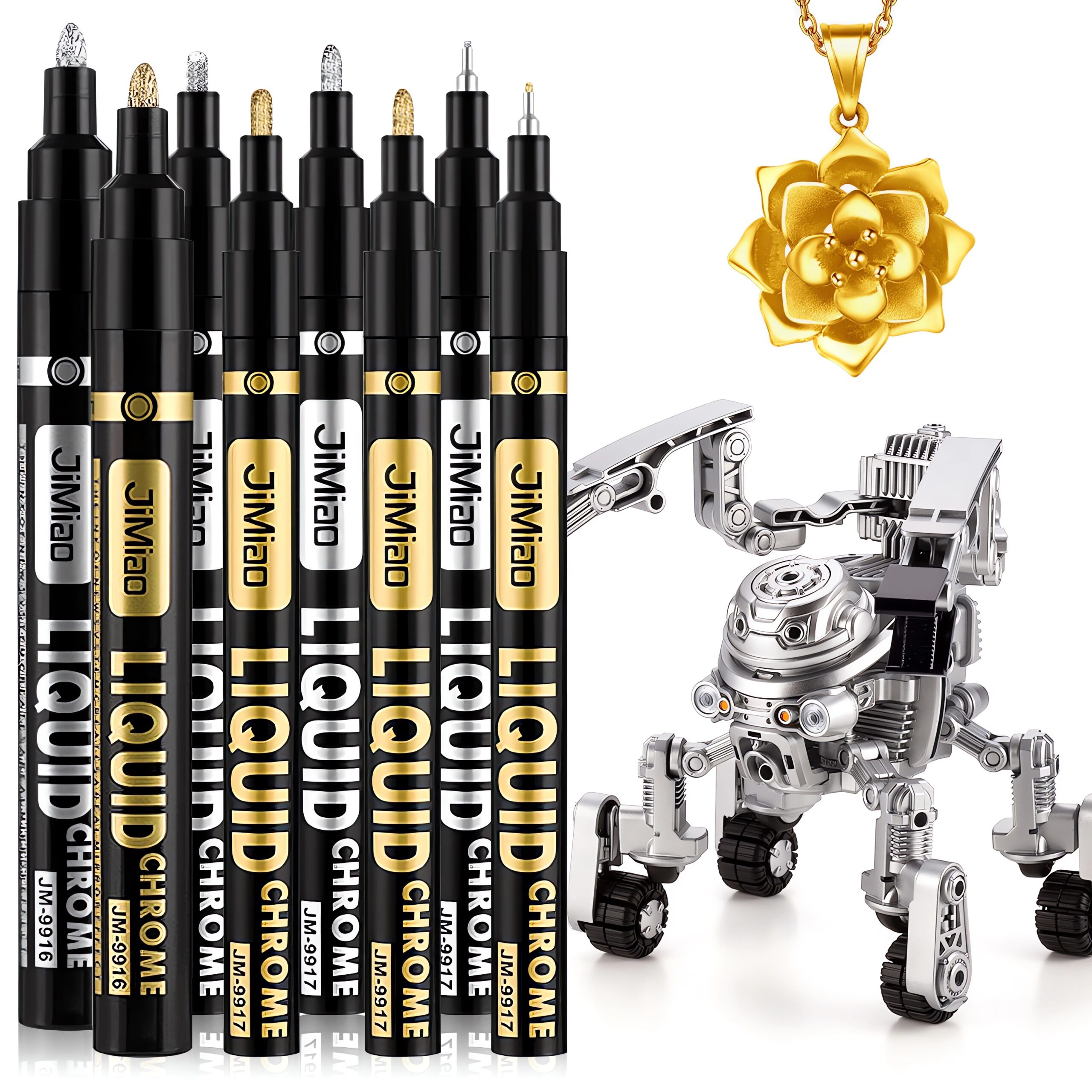 JiMiao Liquid Chrome Metallic Markers for Models – Mirror Silver & Gold – Waterproof, High-Coverage