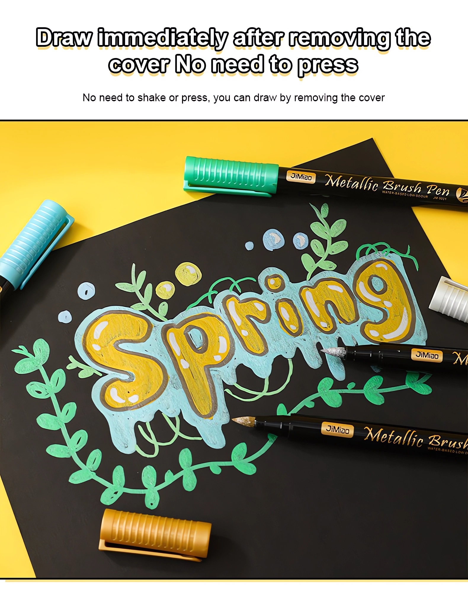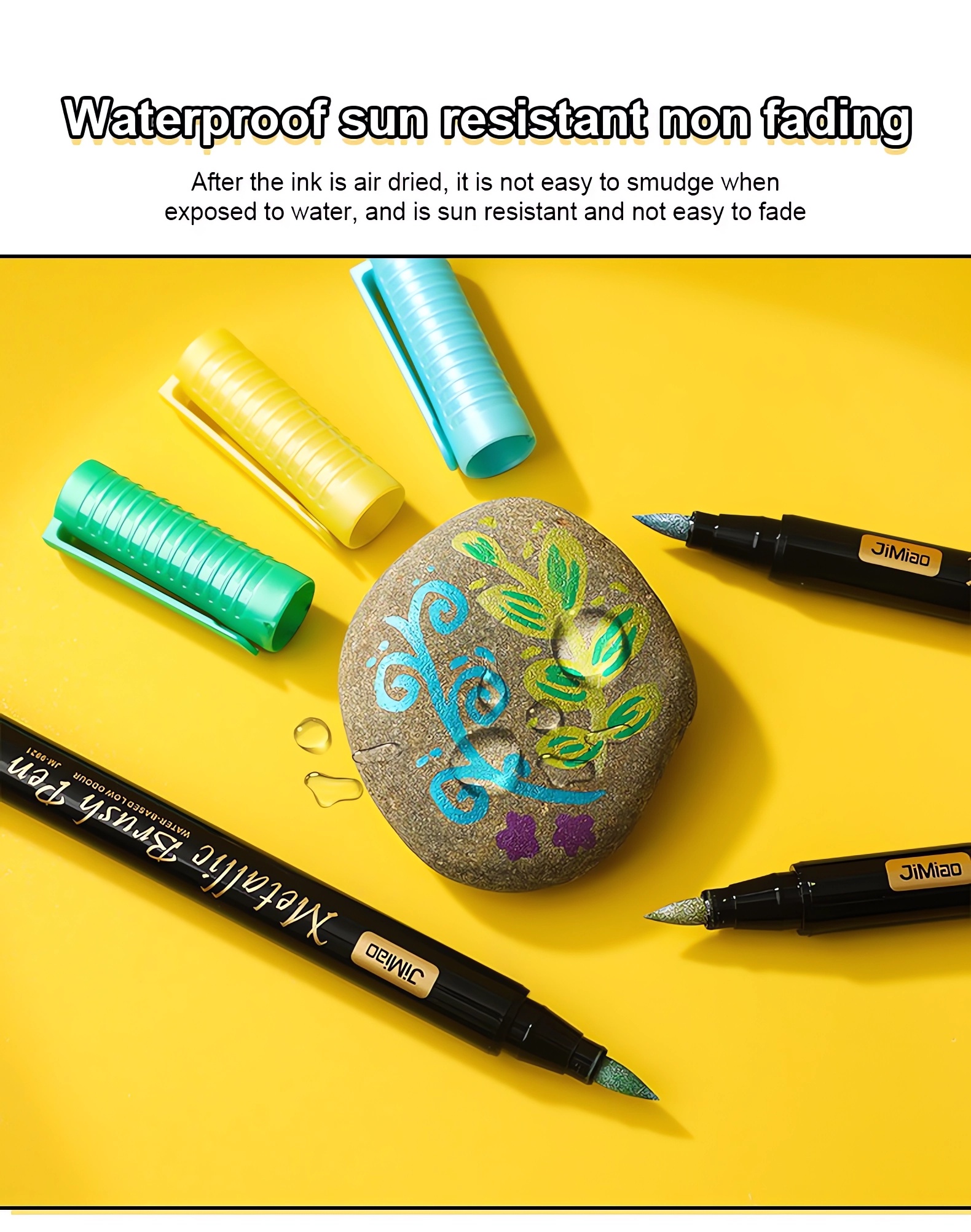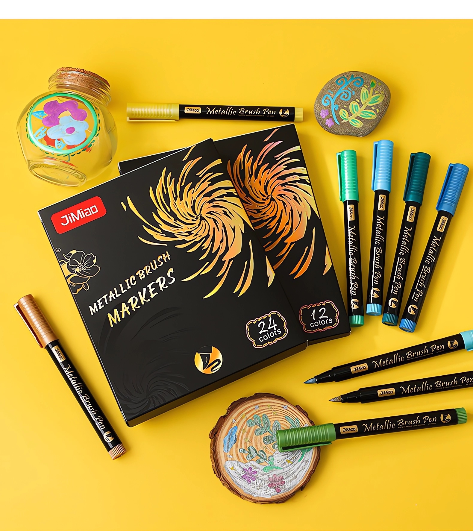 JiMiao Soft-Head Metallic Marker Pen Set – Brush Nib – Upgraded Pigments – Multi-Surface – No Shake