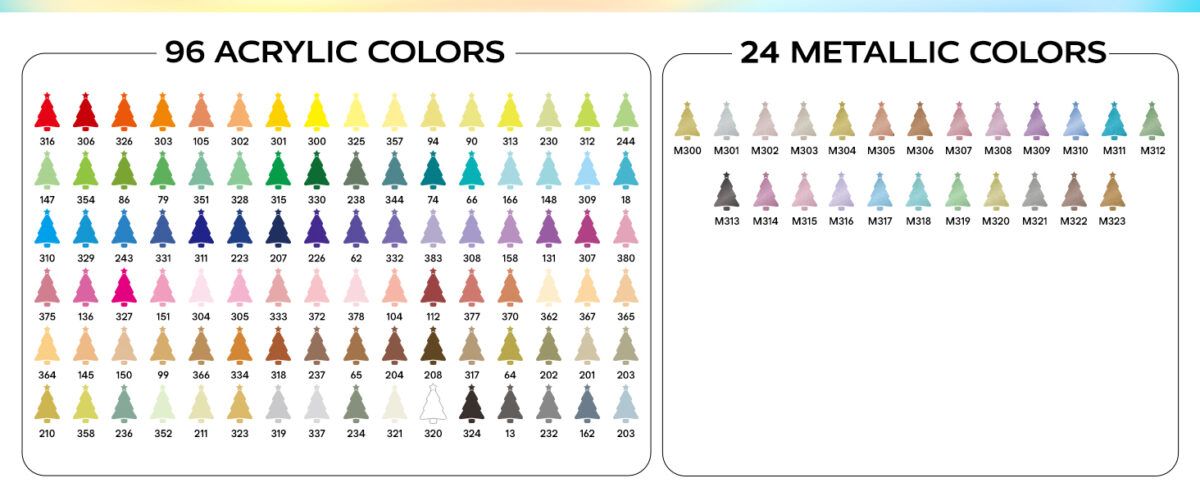 - Vibrant & Opaque Colors – 120 vivid shades with strong coverage, ideal for layering and blending.