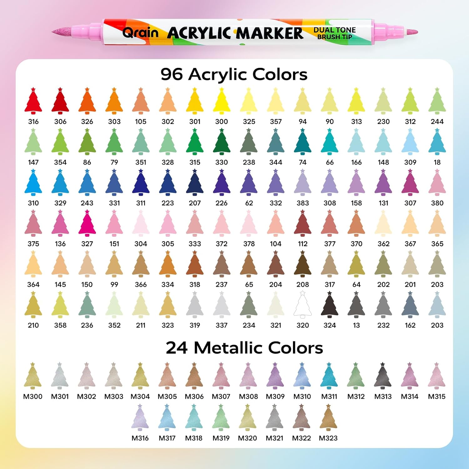Qrain 120 Colors Acrylic Paint Marker Pens Set – Water-Based Brush Tip Markers for Rock, Wood, Glass, Fabric, Pumpkin, DIY Crafts